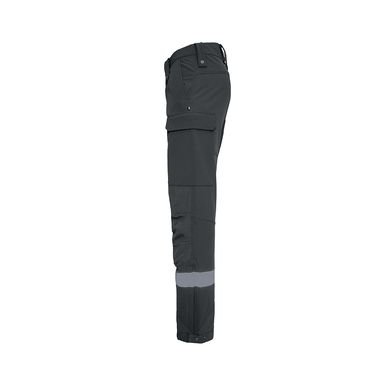 A durable work trouser made from tough dobby fabric with 4-way stretch for maximum freedom of movement. Velcro adjustment at the waist reduces chafing, while knee pads, reflective details, and adjustable leg openings provide full functionality. Smart pocket solutions offer space for both a mobile phone and tools.