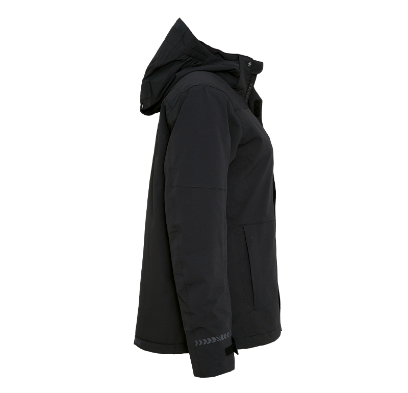 En vadderad jacka som är tillverkad av återvunnen polyester med en PU-beläggning och tejpade sömmar. En högpresterande jacka som skyddar mot regn och är dessutom certiferat enligt EN 343. Jackan är vadderad med lättviktsisolering i Sorona. Reglerbar och avtagbar luva samt justerbara ärmavslut och nederkant.